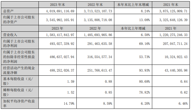 报告显示,2023年新开源实现营收15.83亿元,同比增长6.58%;归母净利润为4.93亿元,同比增长69.16%,扣非归母净利润为4.87亿元,同比增长53.73%。基本每股收益1.59元,同比增长80.68%。
