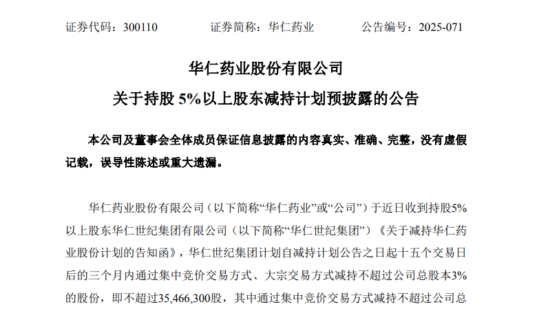 近期, 华仁药业 接连发布的股东减持公告,引发市场热议。