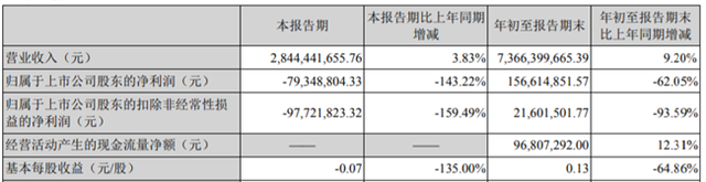 其中,2021年第三季度实现营业收入28.44亿元,同比上升3.83%;归母净利润亏损7934.88万元,同比下降143.22%;扣非净利润亏损9772.18万元,同比下降159.49%。