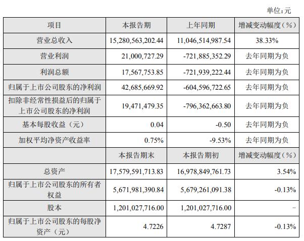 报告期末总资产为1757959.17万元,较期初增长3.54%;归属于上市公司股东的所有者权益为567198.14万元,较期初减少0.13%。归属于上市公司股东的每股净资产为4.7185元,较期初减少0.13%。