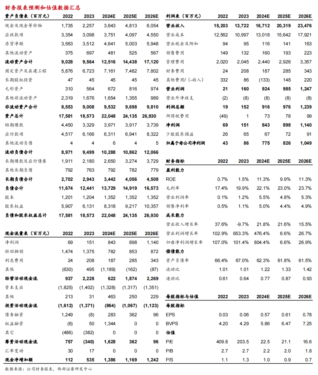 盈利预测:公司经过多年“双调整”战略,已初步形成消费电子精密结构件及模组和新能源零组件及连接器产品双支柱战略格局。考虑到公司各项业务有望迎来收获期,打开新一轮增长空间,我们预计公司2024-26年归母净利润分别为7.75、8.26、10.49亿元。其中24Q1公司获得投资收益约1.77亿元(广东天机智能30%股权交割)。维持买入评级。