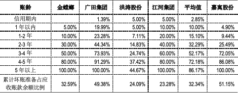 与嘉寓股份同行业的上市公司分账龄段坏账计提比例概况,图片来源:企业公告