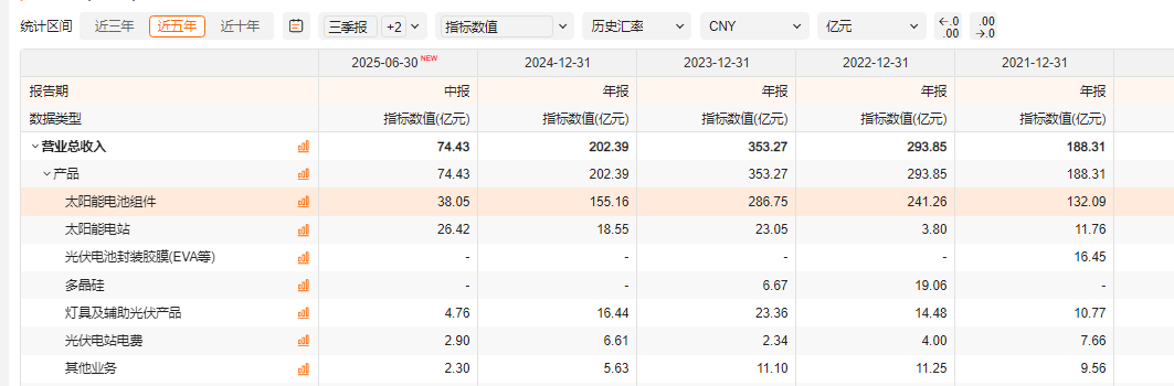数据显示,2023年至2025年三季度,东方日升营业收入分别为353.27亿元、202.39亿元、106.67亿元;归母净利润分别为13.63亿元、-34.36亿元、-9.33亿元,业绩严重滑坡。