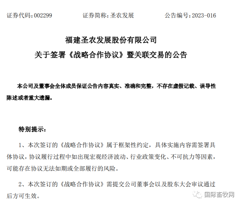 圣农发展称,瑞普生物是中国规模最大、产品种类最全的动保企业之一,也是国家重大动物疫病防控疫苗生产企业。圣维生物是中国东南地区规模最大的兽药疫苗生产企业之一。公司与瑞普生物及圣维生物签署战略合作协议,有利于提升公司在养殖过程中的疫病防控能力,并建立更为精准、有效的疫病防控解决方案和营养与养殖改进方案。同时三方将加强合作力度,共同研发最合适公司的疫苗药品,为公司降低防疫成本,提高运营效率奠定良好的基础。