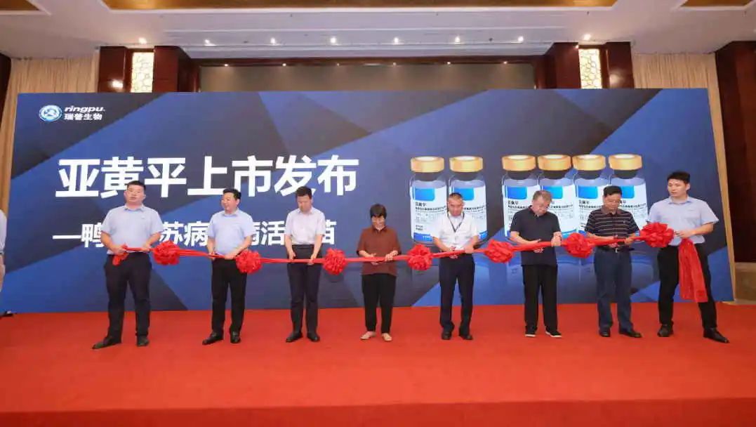 在第二届中国水禽产业五岳论坛上,瑞普生物隆重发布了首个鸭坦布苏病毒病活疫苗——亚黄平。瑞普生物轮值总裁徐雷、中国畜牧业协会水禽分会副秘书长程好良、山东省农科院家禽研究所副所长宋敏训,山东省农科院畜牧所研究员张秀美、山东畜牧兽医协会书记逯岩以及和康源集团董事长孟庆利共同为亚黄平举行上市剪彩仪式。