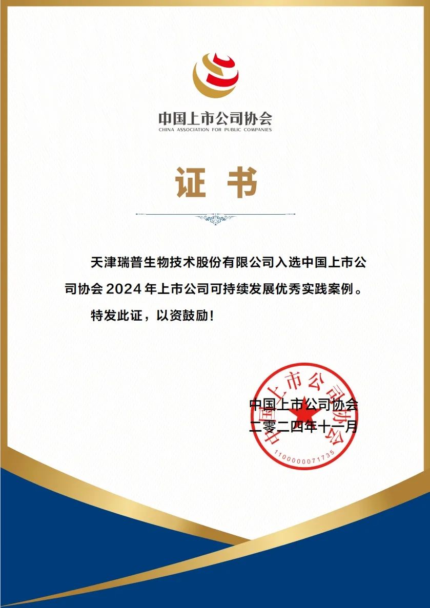 12月3日,中国上市公司协会(简称“中上协”)在重庆发布“2023年报业绩说明会最佳及优秀实践”,瑞普生物荣获“2023年报业绩说明会最佳实践”,彰显了公司在投资者关系管理工作中的创新实践与突出表现。