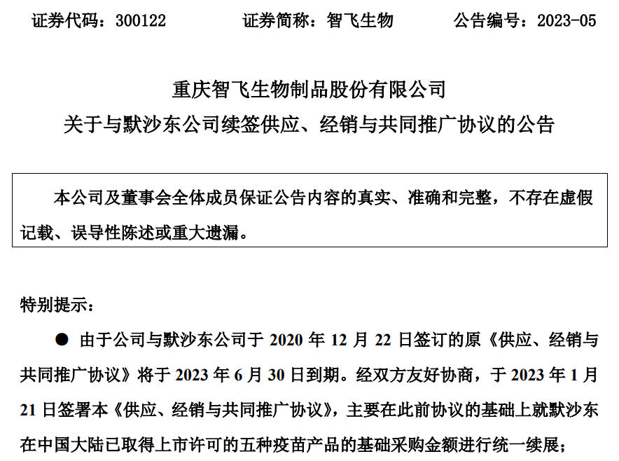 1月29日晚,智飞生物宣布与默沙东签订5种疫苗产品的续约协议。