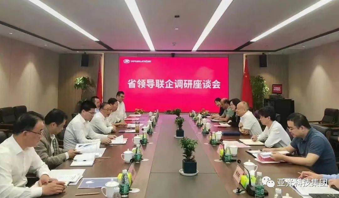 近日,省人大常委会副主任彭国甫一行赴亚光科技集团股份有限公司走访调研,了解企业发展近况,并召开座谈会听取企业工作汇报。亚光科技集团董事长李跃先和相关部门负责人参加调研座谈。