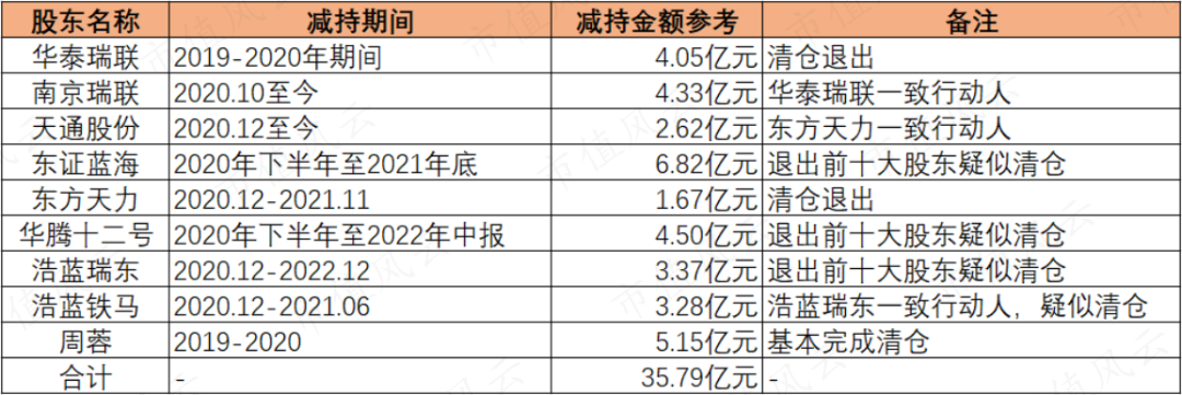 加总后的减持金额也十分惊人,高达35.79亿元。