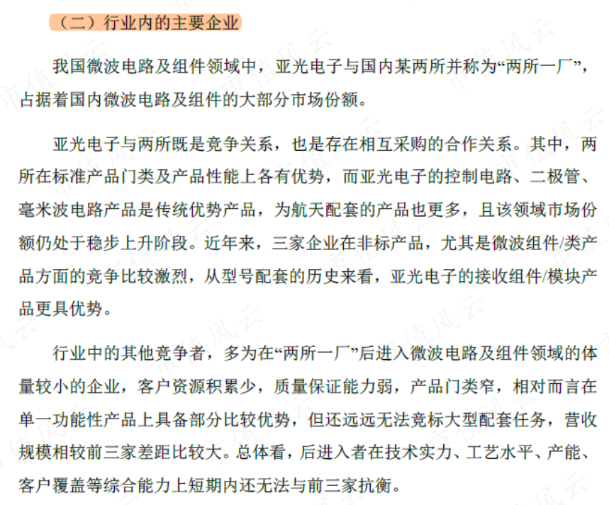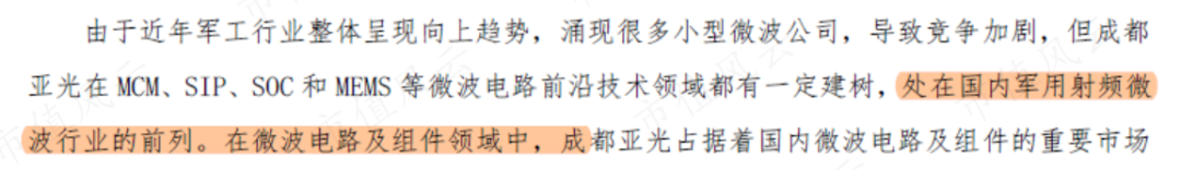 然而上市公司就仍敢大言不惭地说,亚光电子仍处在国内军用射频微波行业的前列,占据重要的市场份额。