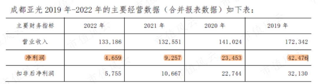 2022年,亚光电子的净利润只剩4,659万元,是三年前(2019年)的1/10多一点。