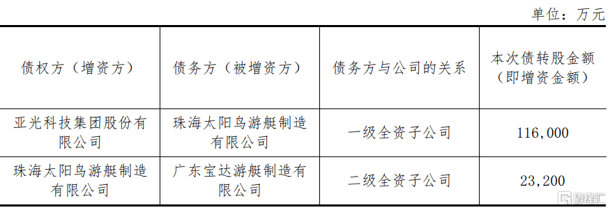 格隆汇10月10日丨亚光科技(300123.SZ)公布,公司于2023年10月10日召开第五届董事会第十六次会议、第五届监事会第十四次会议,会议审议通过了《关于以债转股的方式向全资子公司及孙公司增资的议案》,根据公司实际经营需要,为清理内部往来,进一步优化公司部分全资子公司及孙公司的资产负债结构,便于公司后续闲置资产处置,公司将以债转股的方式向其进行增资。