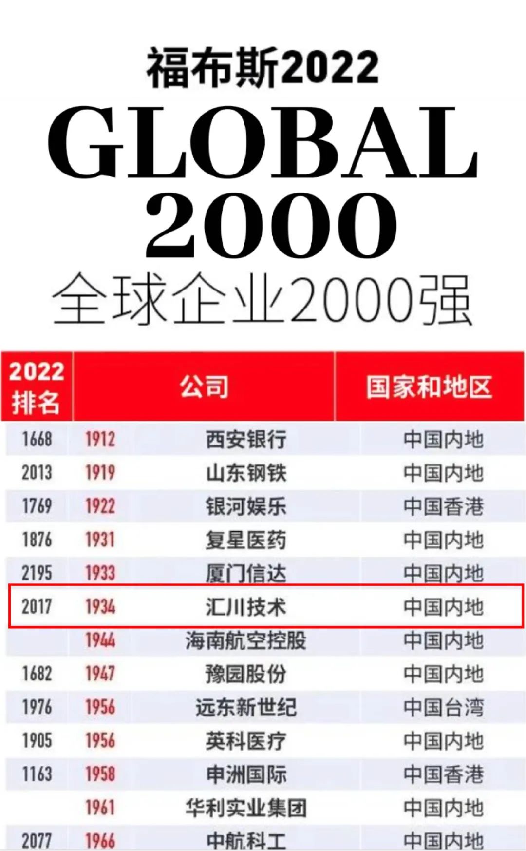 5月12日,福布斯发布2022全球企业2000强(Global 2000)榜单。中国(包括港澳台地区)共有399家企业登陆今年榜单,刷新历史记录。汇川技术凭借营业收入、利润和资产规模等各项经营指标的稳健增长,成功上榜“福布斯2022全球企业2000强”,位列第1934位。