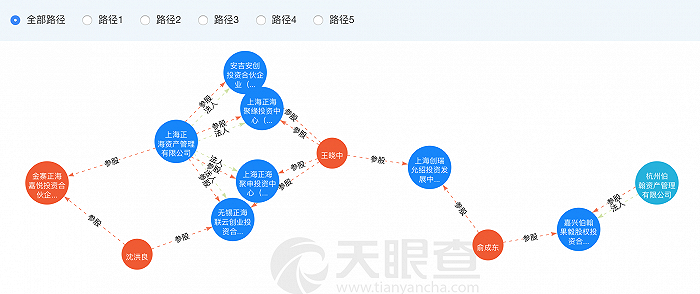 回头看,收购嘉悦新能源分为几步,原股东有正海嘉悦,共青城合创众联投资中心(有限合伙),主要是前者。从天眼查来看,这正海嘉悦与杭州伯翰之间的相关性,能发掘出5条路径。