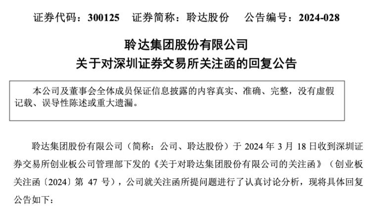 因为聆达股份子公司临时停产,将对公司2024年的经营业绩产生较大不利影响,因此引发交易所关注。公司于3月18日收到深交所的关注函。