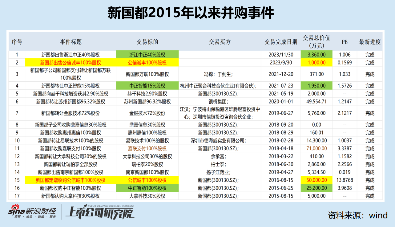 新国都的高溢价并购不止嘉联支付一家。从2015年开始,公司不断进行现金收购,到2018年至少有6起收购。