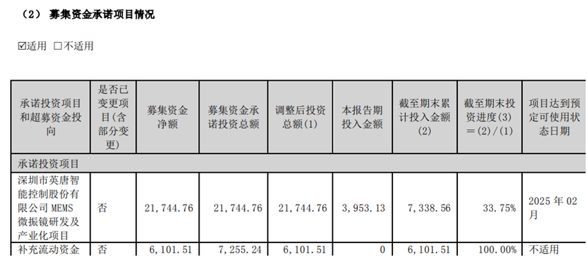 然而,英唐智控的募投项目进展并不顺利。在2024年半年报中,公司披露募投项目在两年时间内仅完成了约三分之一的进度。