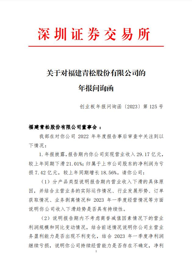 深交所12日向福建青松股份有限公司下发年报问询函,要求其说明报告期内营业收入下滑的具体原因及公司收入下滑趋势是否具有持续性等。