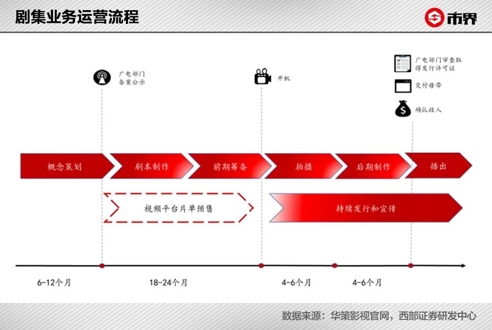 一般,电视剧的销售模式以预售为主,制片公司在策划并投资拍摄制作完电视剧后,与电视台或视频网站签订发行合同,通过出售版权获得发行收入。不过随着电视剧投资愈发谨慎,版权剧之外,又衍生出了定制剧跟分账剧。