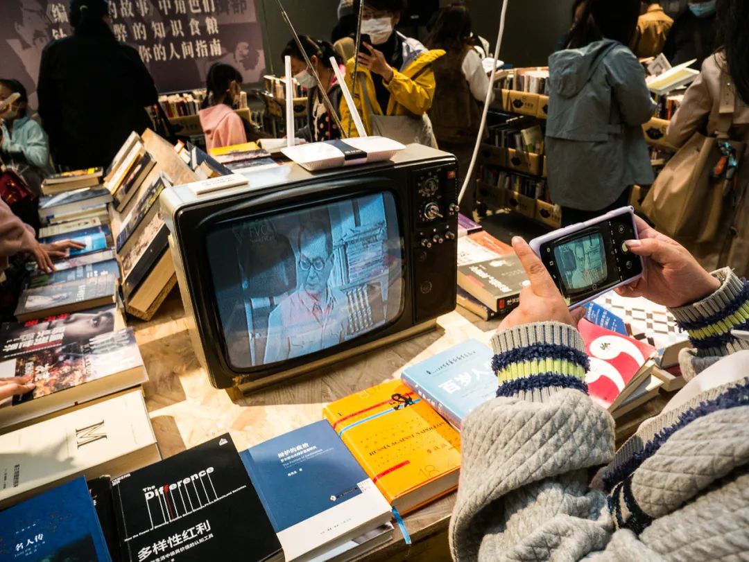 (一台老式电视机上,正在播放电视剧《编辑部的故事》)