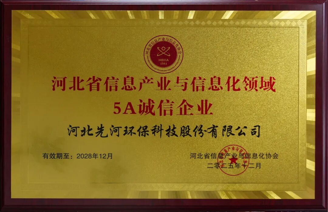 据悉,该荣誉称号依例年度评定,有效期三年。而早在2022年,先河环保就曾获评“河北省信息产业与信息化领域5A诚信企业”。此次再度获评,标志着公司在连续多个评审周期内始终保持优异的诚信建设水平,企业的信用体系建设与合规经营管理获得了持续性的权威认可。