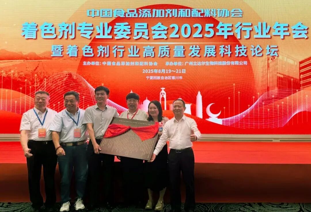 ▼8月19日-21日,总经理卢颖赴宁夏银川市,参加中国食品添加剂和配料协会-着色剂专业委员会2025年行业年会暨着色剂行业高质量发展科技论坛,并应邀进行了应用创新促进天然色素产业再发现的报告。