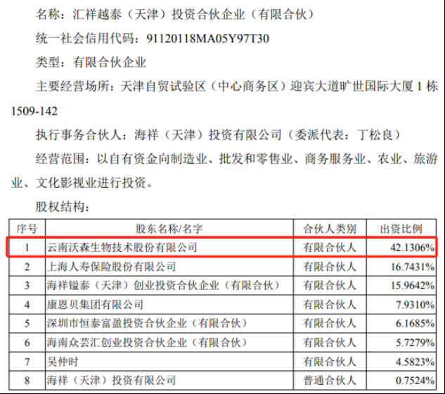 然而,这笔看似旨在巩固核心业务的收购,自披露以来便陷入多重争议。首先,玉溪沃森在三个月内估值从约188.6亿元降至145亿元。其次,交易结构涉及“内部交易”嫌疑——交易对手汇祥越泰(天津)投资合伙企业(有限合伙)(以下简称“汇祥越泰”)的合伙人中, 沃森生物 自身出资占42.13%,引发对其公允性与透明度的质疑。