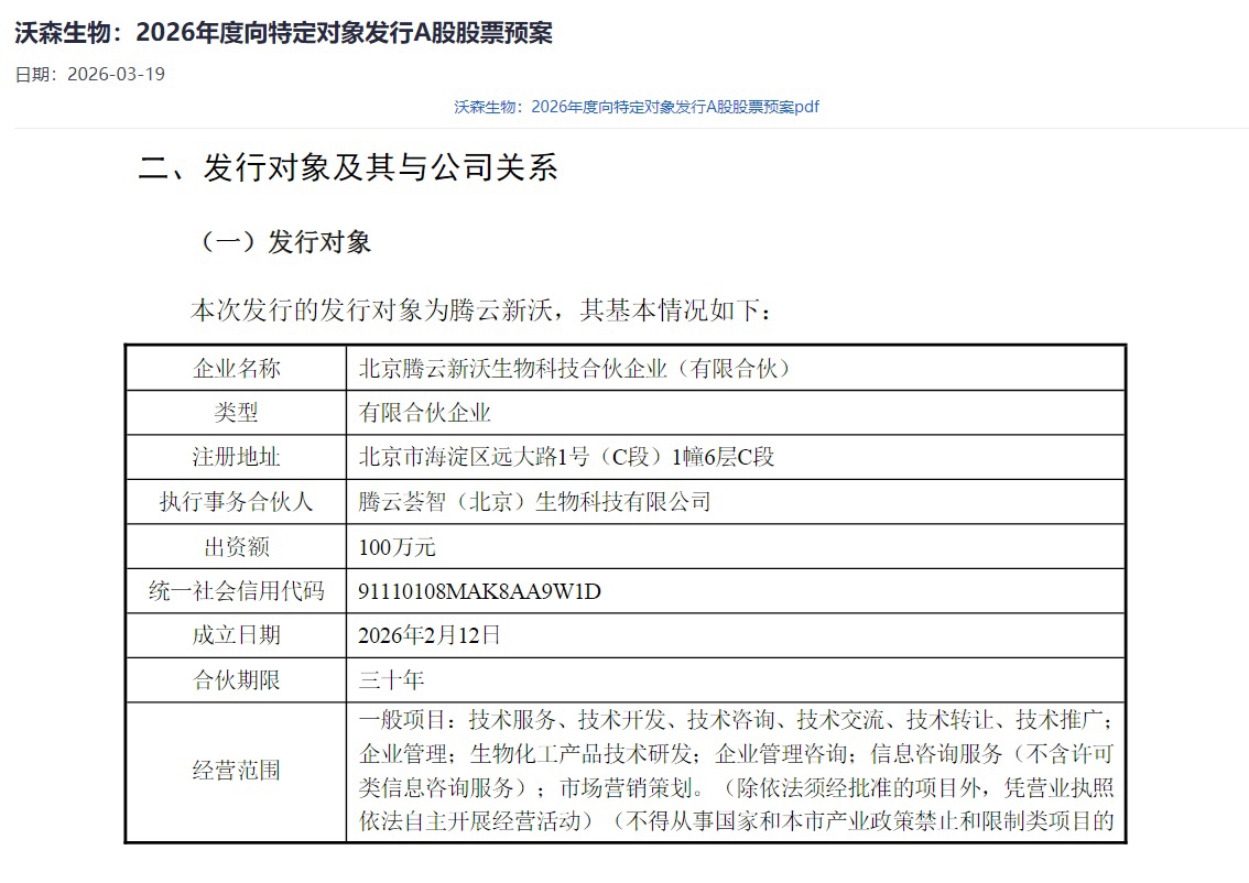北京腾云新沃生物科技合伙企业(下称“腾云新沃”)通过定增入驻,“70后”闽商“企二代”黄涛成为沃森生物上市以来首次明确的实际控制人。