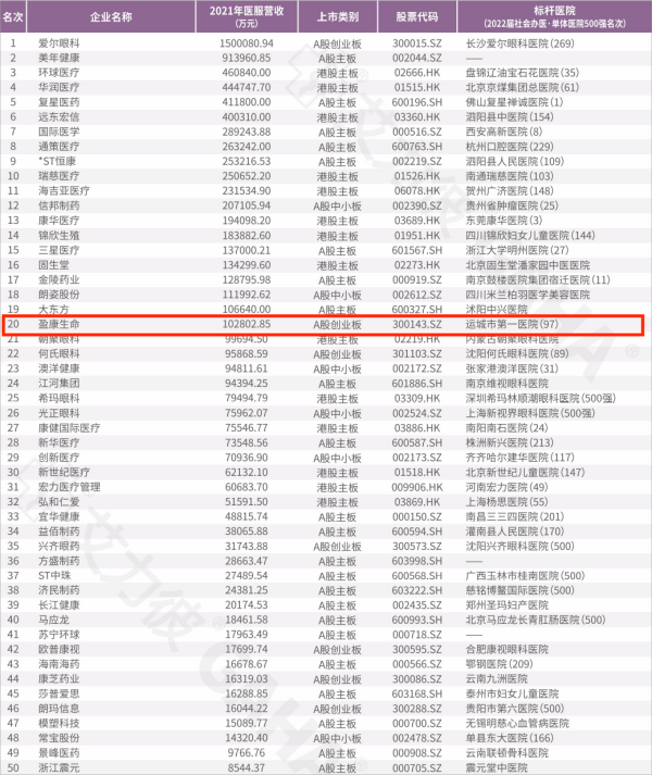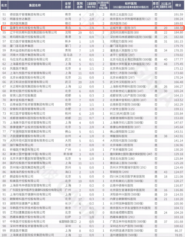 盈康生命入选2022届社会办医医院集团100强,位居54名