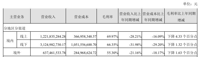 线上增长乏力:线上渠道收入同比下降28.21%至12.21亿元。