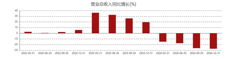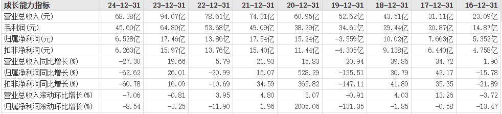 分季度看,营收同比增长及归母净利润同比增长从2024年1季度开始逐季度下滑。与2023年全年净利润17.46亿元相比,2024年净利润缩水超10亿元。