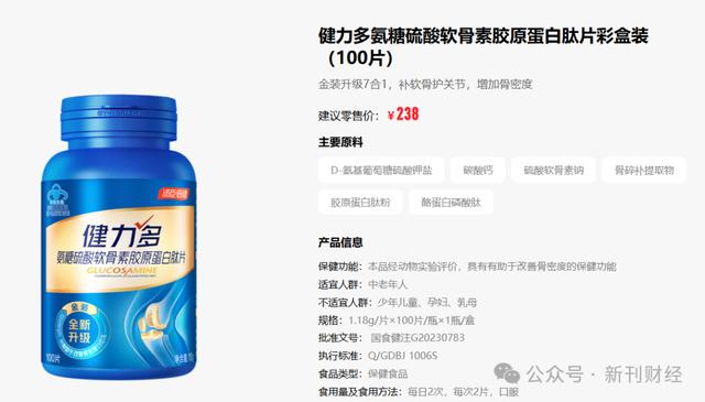 根据汤臣倍健官网披露的产品信息,公司目前在关节健康领域已布局多款健力多系列保健品,包括氨糖硫酸软骨素胶原蛋白肽片等产品。该系列产品定位为膳食补充剂,提供100片彩盒装和90片装两种规格,官方建议零售价分别为238元和198元。从适用人群来看,这些产品主要面向中老年消费群体,此外在产品说明中明确标注了"不适宜少年儿童、孕妇及哺乳期妇女使用"的提示信息。