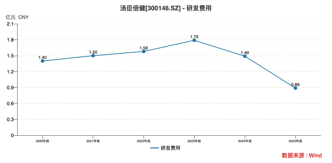 与此同时,当汤臣倍健宣称要聚焦“科学营养”进行产品创新时,最能代表长期主义的研发费用则同比骤降了40.15%至0.89亿元。