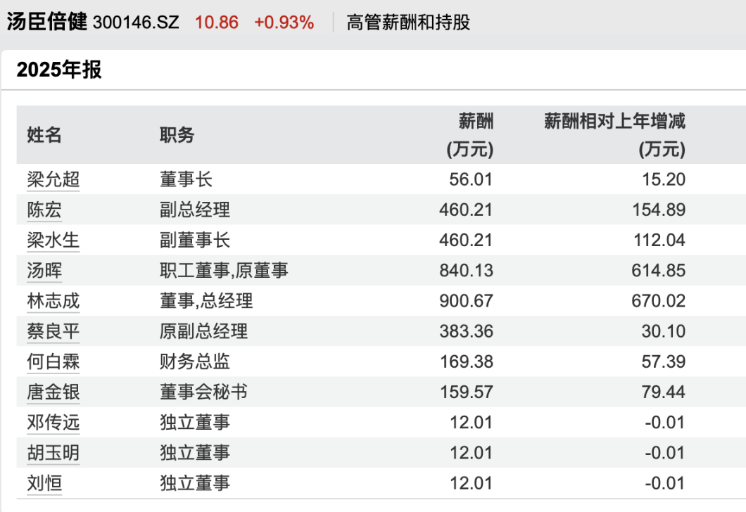 经历了业绩陷入泥潭与战略方向失利的2025年,汤臣倍健的高管薪酬却走出了独立行情。