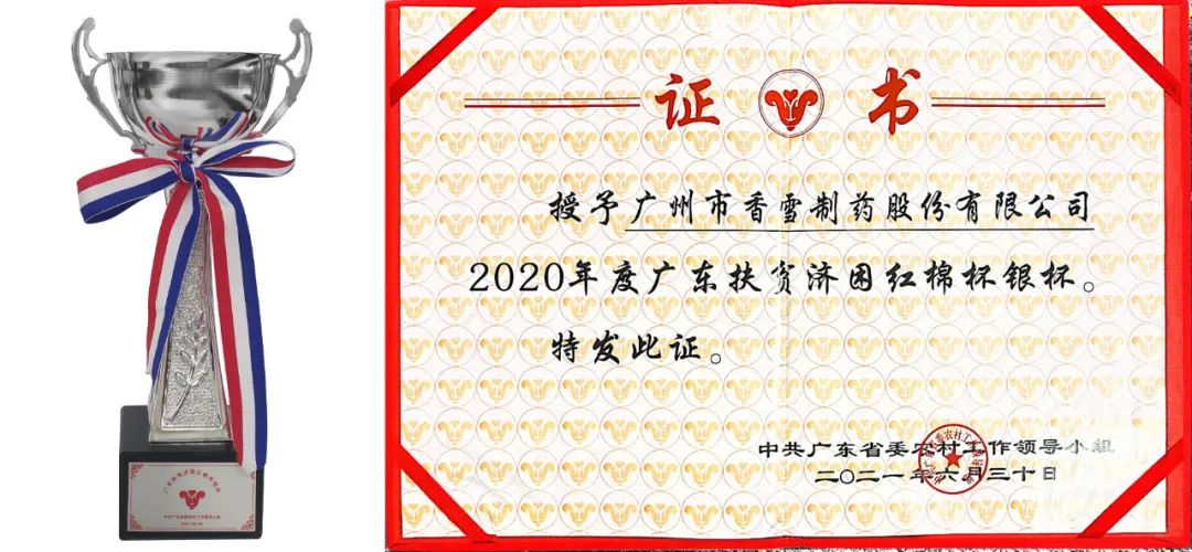 日前,广东省扶贫开发领导小组通报了2020年度广东扶贫济困红棉杯认定结果,香雪制药凭借在决胜脱贫攻坚、助力乡村振兴等方面的突出贡献,荣获“2020年度广东扶贫济困红棉杯银杯”。