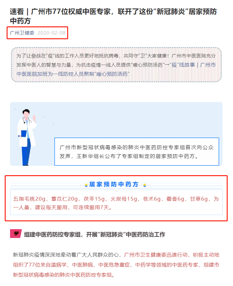 家住广州的人,应该都听过“粤抗一号”。它是2020年2月、疫情爆发之初时,广州卫健委组织77位中医药专家联合制定的“新冠肺炎”居家预防中药方。