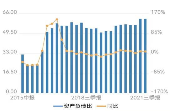记者观察香雪制药近3年的负债发现,其负债资产比已经由2018年的53.48%攀升至2021年三季度的61.76%,负债比攀升的同时,其流动资产负债也在不断增加。