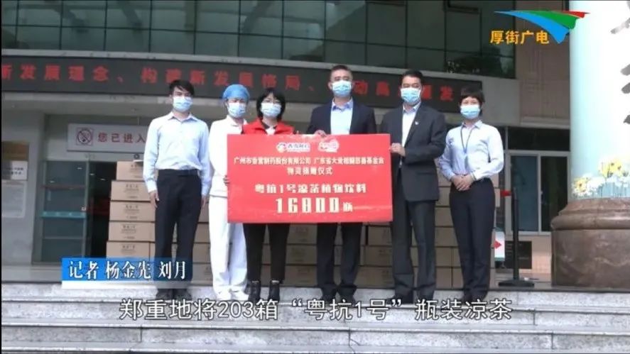 12月16日,香雪制药第一时间通过广东省大爱相髓慈善基金会向厚街医院、网格、环卫等部门捐赠16800瓶粤抗1号凉茶植物饮料,助力东莞抗疫。