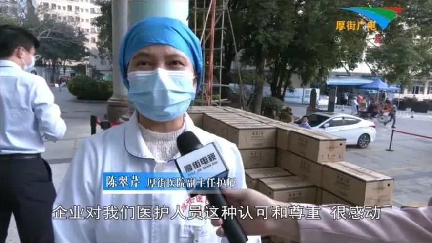 厚街医院副主任护师陈翠芹表示,“我们医护人员这个工作虽说辛苦,但是是职责所在,是应该的,爱心企业对我们的捐赠就体现了企业对我们医护人员的认可和尊重,非常感动。”
