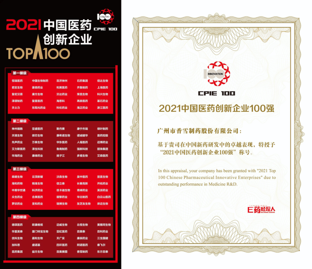 12月21日,2021中国医药企业家科学家投资家大会(简称“启思会”)在线上开幕,大会隆重发布“2021中国医药创新企业100强”。香雪制药创新实力再获认可,荣登“2021中国医药创新企业100强”榜单。