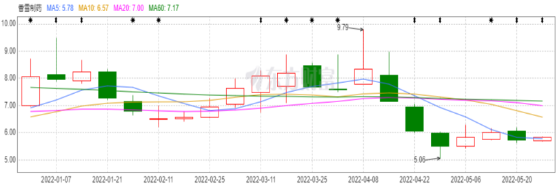 截至5月23日收盘,香雪制药股价报收5.84元/股,涨幅为2.10%。