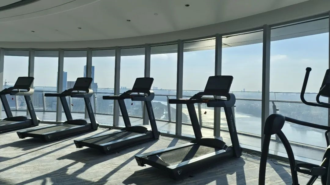 (图片说明:香岚官洲酒店?270度全江景健身房)