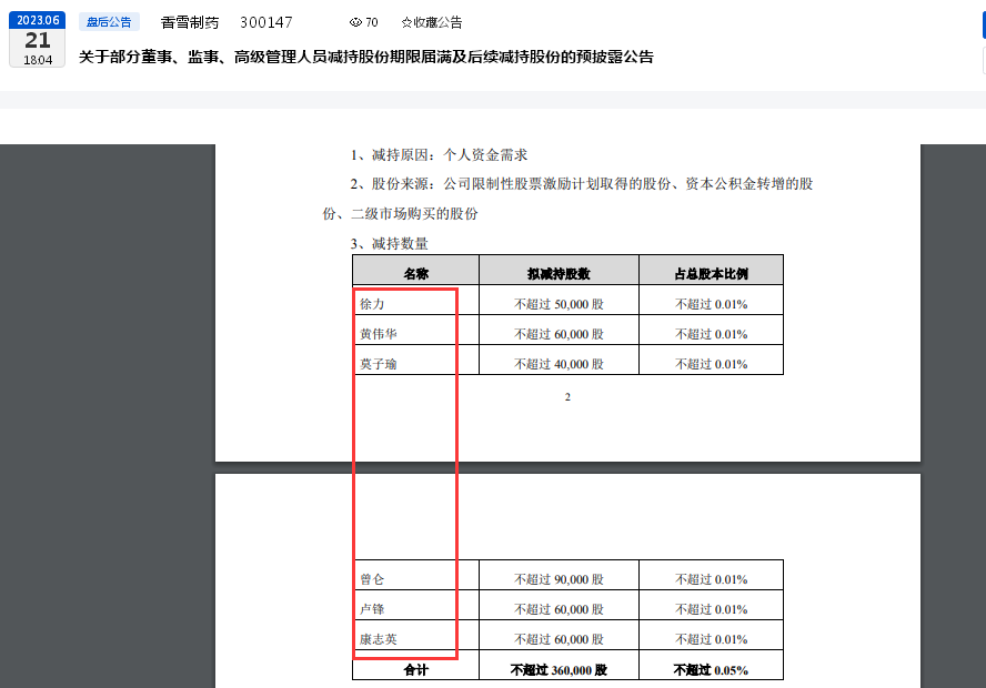 香雪制药近日公告多名高管纷纷抛出了减持计划,或已给出了答案。
