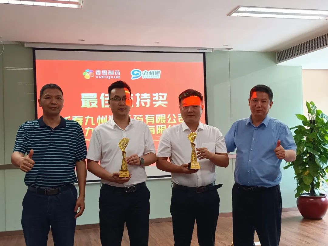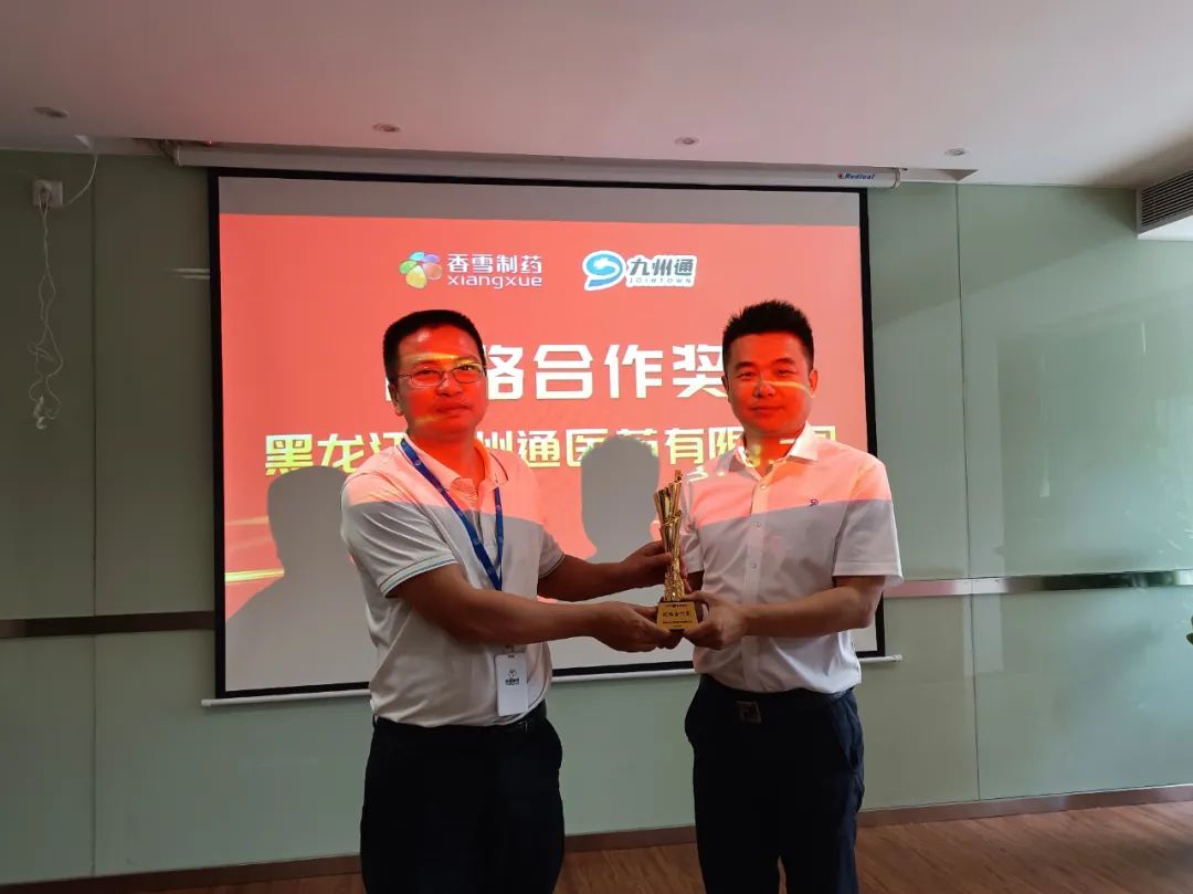 会中,香雪制药向黑龙江九州通颁发了战略合作奖,向长春九州通、大连九州通颁发了最佳支持奖。