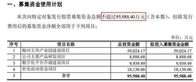 募集资金拟用于梅州五华产业园建设项目、公司主要产品研发项目、数字化平台升级建设项目和补充流动资金。其中,拟投入1.8亿用于补充流动资金,占比约18.9%。