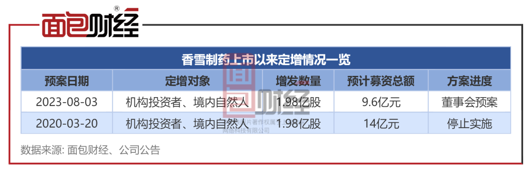 面包财经研究显示,此次定增前,香雪制药曾在2020年发布14亿元的定增募资计划,但最终以失败告终。