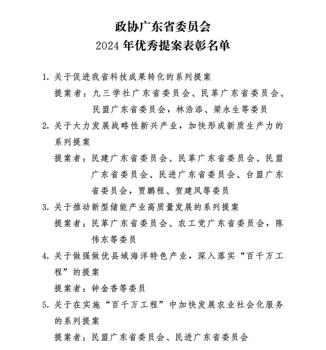 一、政协广东省委员会2024年优秀提案表彰名单