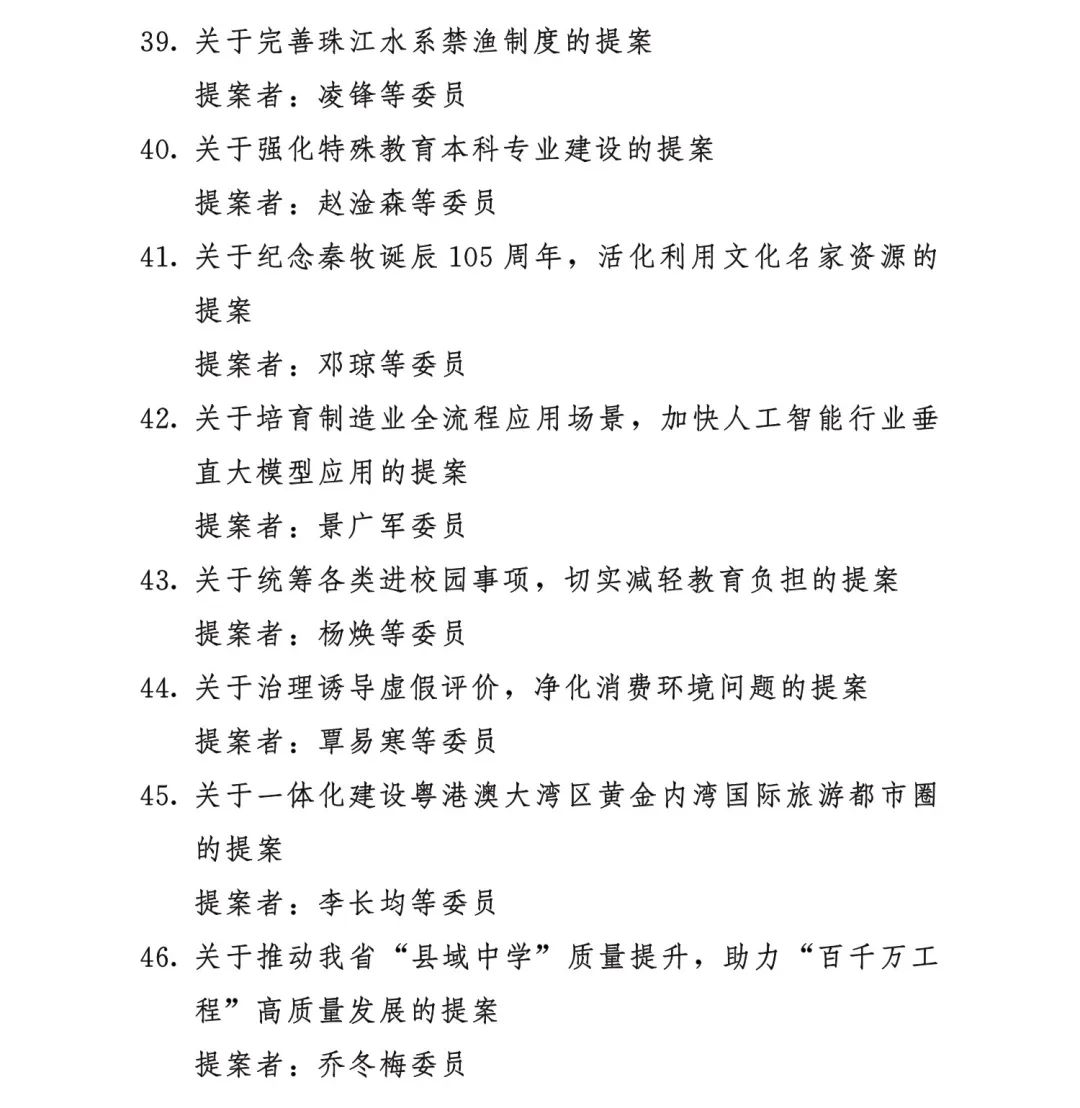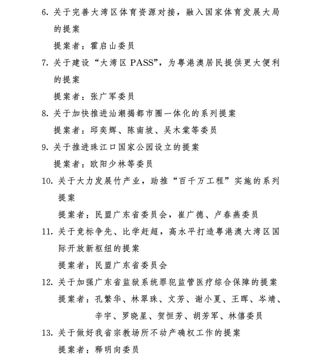 1月14日,广东省政协十三届三次会议在广州开幕。大会听取中国人民政治协商会议广东省委员会常务委员会关于政协十三届二次会议以来提案工作情况的报告,并对《关于深挖湾区优势,助推中小生物医药企业出海高质量发展的提案》等46件优秀提案、22名履职表现突出的委员予以表彰。具体名单如下: