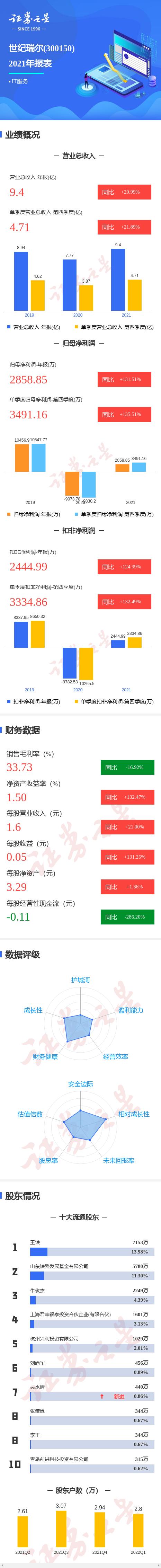 世纪瑞尔2022一季报显示,公司主营收入6598.55万元,同比下降29.06%;归母净利润-1466.06万元,同比下降51.52%;扣非净利润-1555.46万元,同比下降47.95%;其中2022年第一季度,公司单季度主营收入6598.55万元,同比下降29.06%;单季度归母净利润-1466.06万元,同比下降51.52%;单季度扣非净利润-1555.46万元,同比下降47.95%;负债率17.82%,投资收益-248.43万元,财务费用-12.02万元,毛利率53.39%。