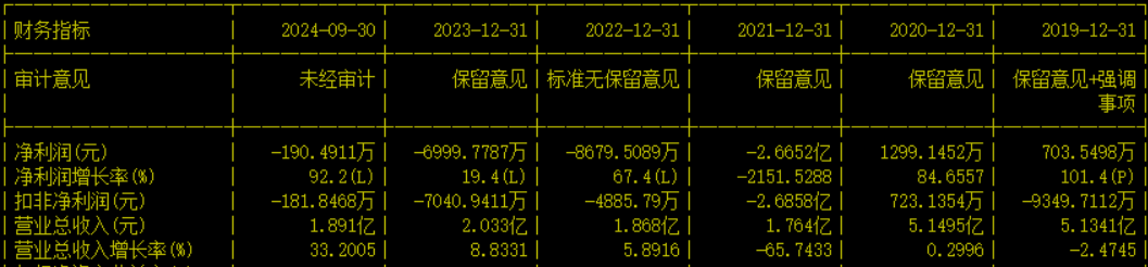公司业绩长期不佳。2021年、2022年、2023年及2024年1-9月,公司扣非净利润分别为723万元、-26858万元、-4886万元、-7041万元及-182万元。
